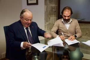 (Víctor Sariego, 1/10/2018).- Ángel Fagilde Trabada, presidente de las Aulas Senior de Galicia (Ategal) y Julio Masid, director general de Viaqua, firmaron el pasado 31 de octubre en Santiago un convenio mediante el cual la empresa gestora integral de aguas subvencionará el proyecto de Ategal para personas mayores “Talento Senior. Liderando mi salud. Pautas para tener una salud de cine”, de preparación a la jubilación que impartirá la docente, coach, autora y médica de familia, Estefanía Zardoya Cabo.