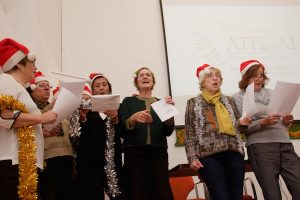 La fiesta de Navidad de Ategal continuó con una actuación de la coral de la entidad que interpretó varios temas navideños; la interpretación de un villancico en inglés del grupo de alumnos y alumnas del curso en este idioma; y una comida colectiva de confraternización.
