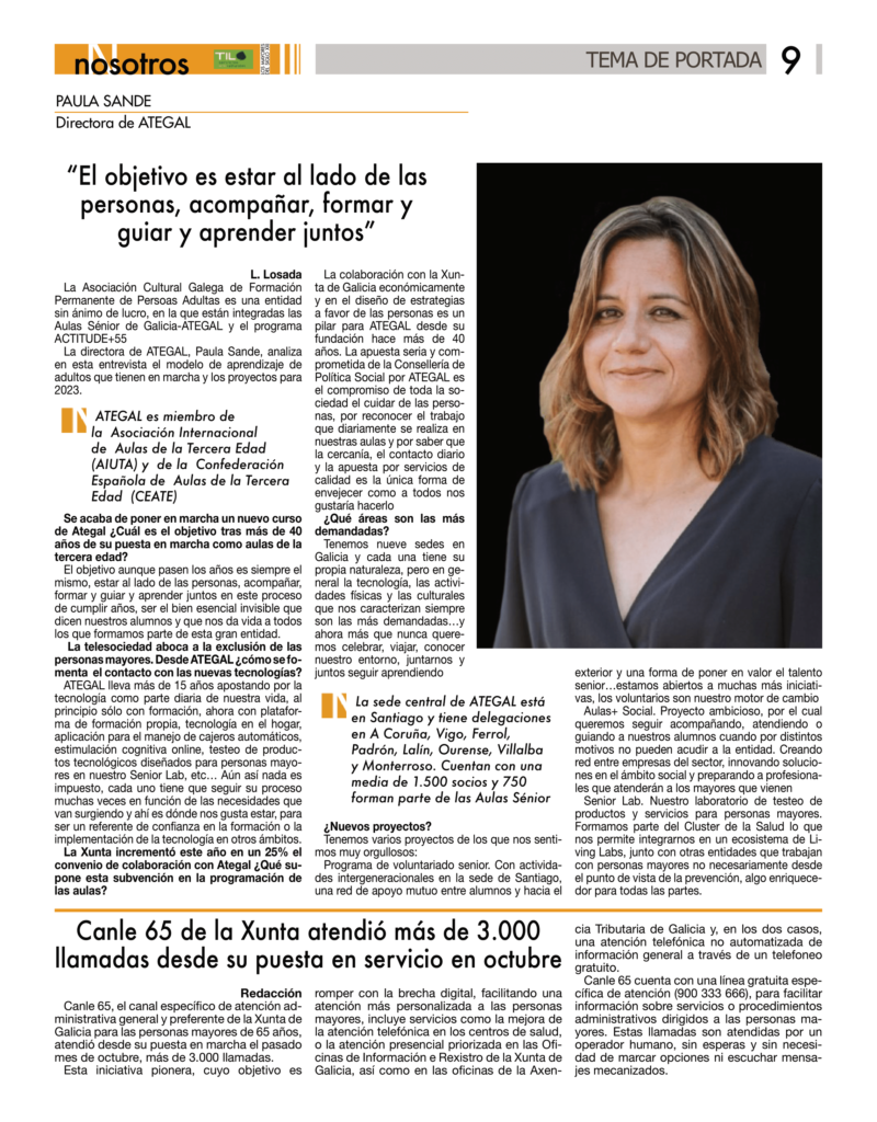 A publicación sobre actualidade para persoas maiores de 50 anos «Nosotros los mayores» fala sobre ATEGAL.