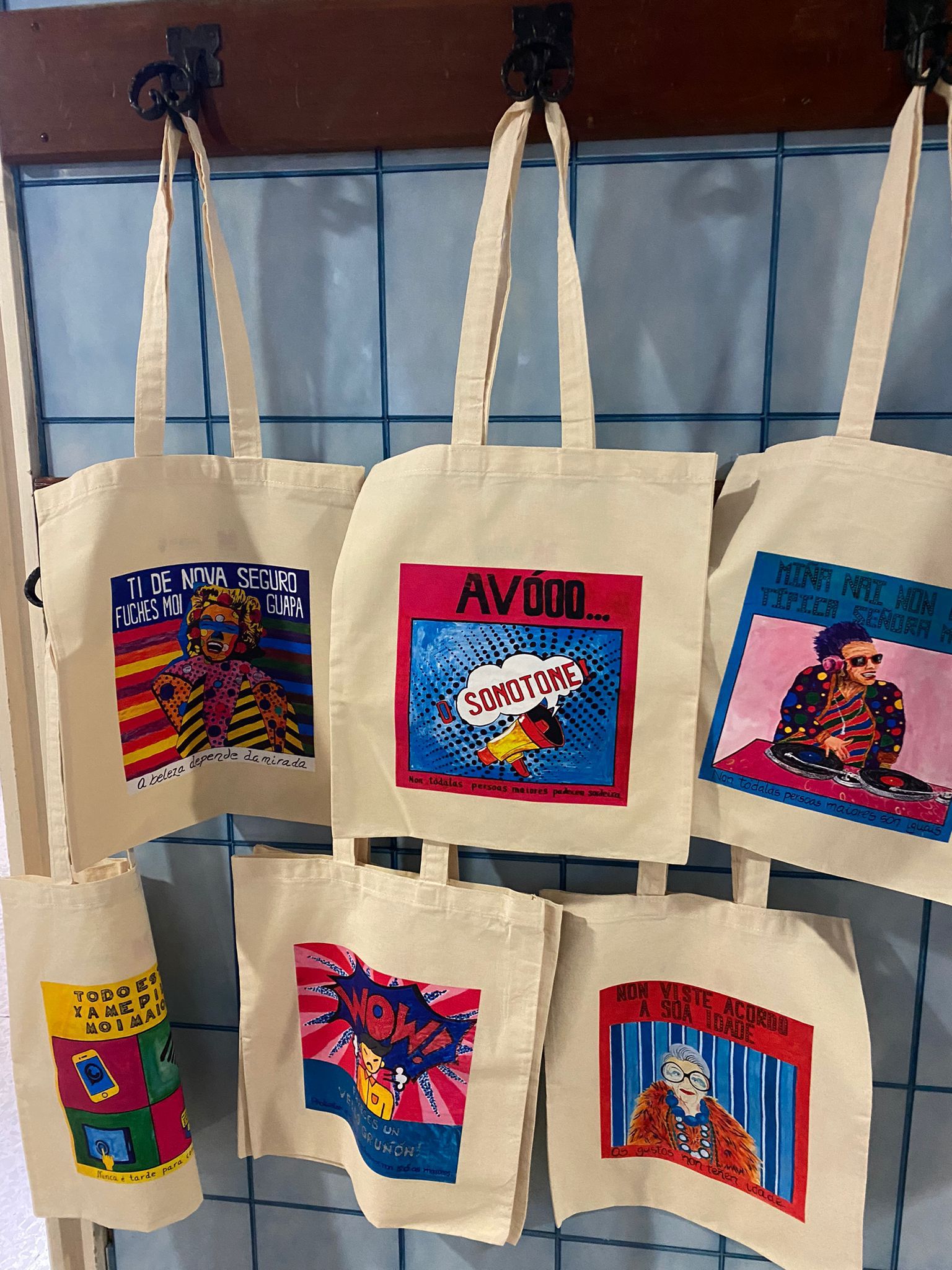 Ante o éxito da actividade, coa que se conseguiu dar unha maior visibilidade a esta problemática, ampliouse a acción co uso dos deseños para a impresión de tote bags. Para o deseño das bolsas de tea, contamos coa colaboración de Moslo, unha papelería sostible que se atopa en Santiago. Alí poderedes personalizar unha tote vosa, cuxo deseño queredes modificar como sería o caso, por exemplo, de bolsas que teñades dalgún congreso, publicidade… Ou, se non tedes ningunha, teñen diferentes modalidades de bolsas dispoñibles, de distintas calidades e prezos.
