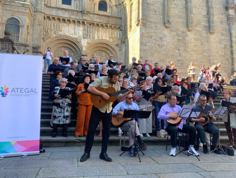 Durante a tarde do luns, 26 de maio, aqueles que pasaban pola Praza de Praterías puideron gozar da música en vivo de distintas corais compostelás. O evento, organizado pola Asociación Cultural Galega de Formación Permanente de persoas adultas, contou ademais coa participación das corais José Saramago e Habaneras Rocha Forte. A través deste tipo de encontros, a asociación galega consegue darlle visibilidade á importancia de impulsar una oferta cultural e de lecer creada por e para as persoas maiores, que contan con inquedanzas e intereses heteroxéneos moitas veces invisibilizados na...
