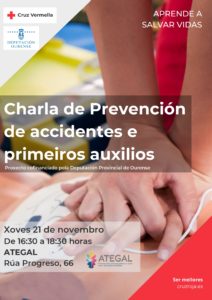 El próximo jueves, 21 de noviembre, las Aulas de Ourense acogen una charla sobre prevención de riesgos de accidentes y primeros auxilios. Para ello, contarán con la presencia de la Cruz Roja. La jornada cuenta con la cofinanciación de la Diputación de Ourense.