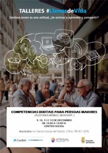 Las Aulas de Padrón siguen ampliando la oferta de talleres enmarcados en el programa Llenos de Vida de la Acción Social de CaixaBank. En diciembre, inician Competencias digitales para personas mayores, que se desarrollará del 9 al 12 de diciembre. Las inscripciones se hacen en el Centro Social de Padrón. Las actividades de las Aulas