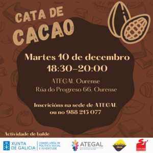 El próximo martes 10 de diciembre, los alumnos de las Aulas de Ourense podrán disfrutar de una cata de cacao de comercio justo. En la jornada, aprenderán sobre el comercio justo y la producción de caco. Además, mediante la cata a ciegas aprenderán a distinguir sus variedades, descubriendo los diferentes aromas y matices. La actividad