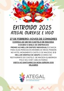 El jueves 27 de febrero, las Aulas de Vigo y Ourense celebrarán el Carnaval con una excursión a Maceda y al Santuario da Nosa Señora dos Milagres. La visita incluye comida y concurso-baile en el castillo de Maceda.