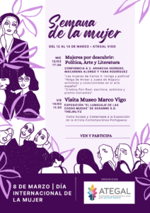 Las Aulas de Vigo se unen a las reivindicaciones del 8M con actividades durante esta semana que ponen en valor el papel fundamental de la mujer en en la historia y en la cultura. El miércoles 12 de marzo, celebrarán una conferencia sobre mujeres transcendentales en la política, el arte y la literatura. Arancha Herrero,