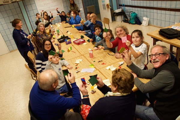 (Víctor Sariego, 7/12/2018).- Con motivo del Día Internacional del Voluntariado que se celebró en todo el mundo el pasado 5 de diciembre, la sede de Santiago de Compostela de las Aulas Senior de Galicia, Ategal, organizó un taller intergeneracional de papiroflexia que contó con la participación voluntaria de su instructora y de personal de la