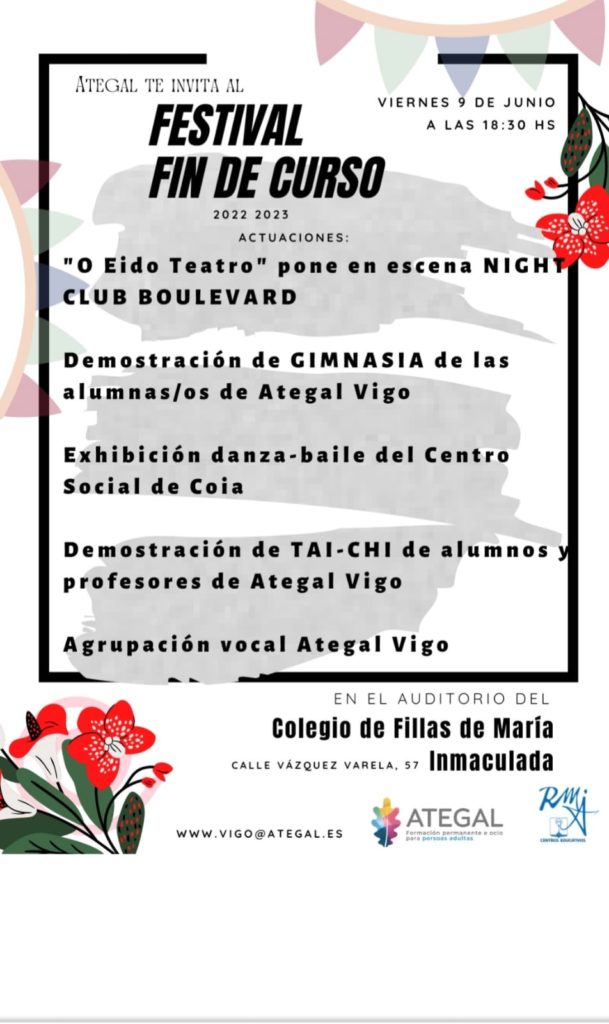 Las Aulas de Vigo despiden el curso por todo lo alto. Para ello, han organizado un gran festival que reúne teatro, música y exhibiciones culturales de todo tipo. El acto arrancará a las 18:30 horas de este viernes 9 de junio en el auditorio del Colegio de Fillas de María Inmaculada, en la calle Vázquez […]