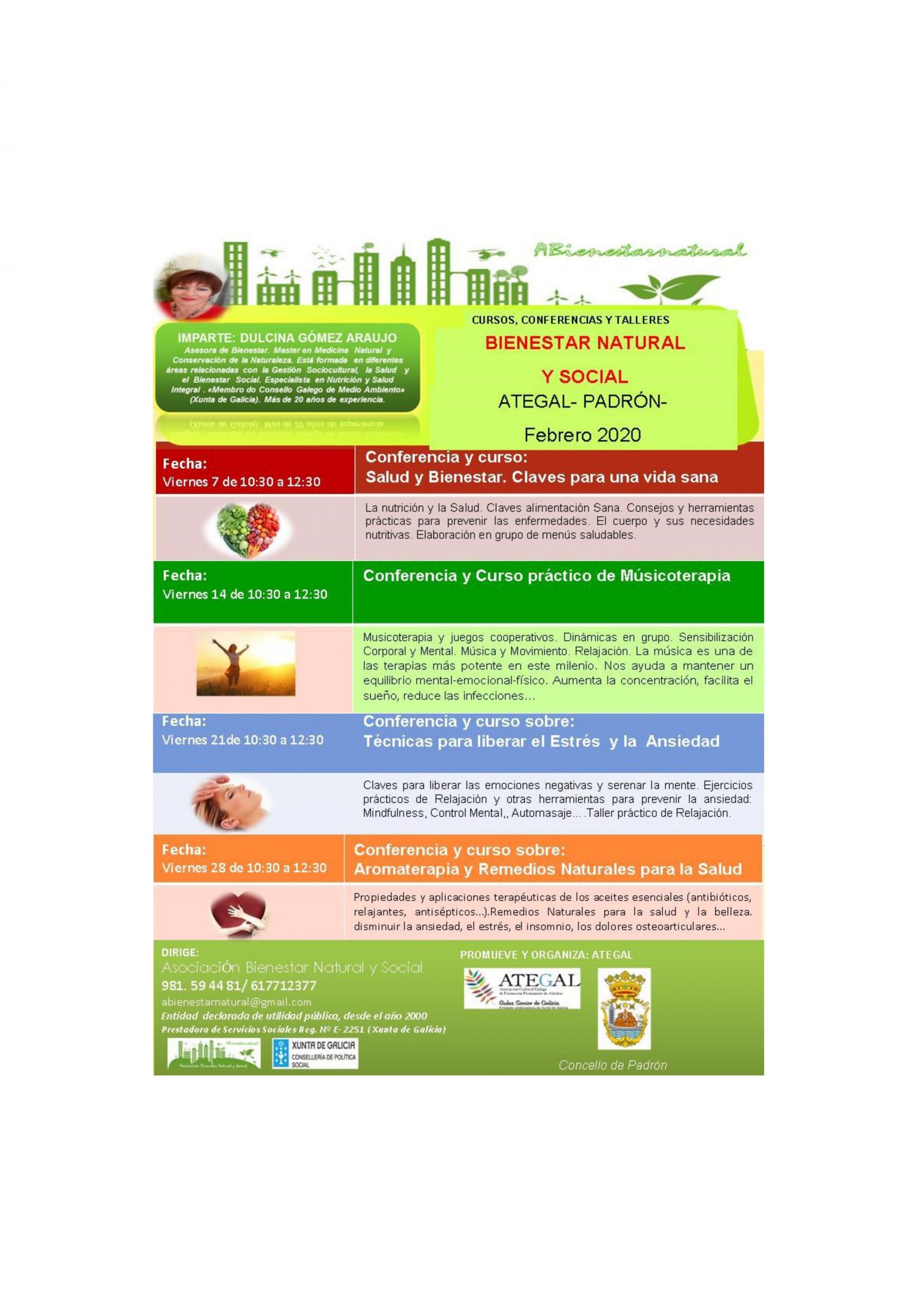 Comienzan nuestros cursos de Bienestar natural y Social en Padrón. Este viernes disfrutaremos del taller «Claves para una vida sana» con Dulcina Gómez Araujo.