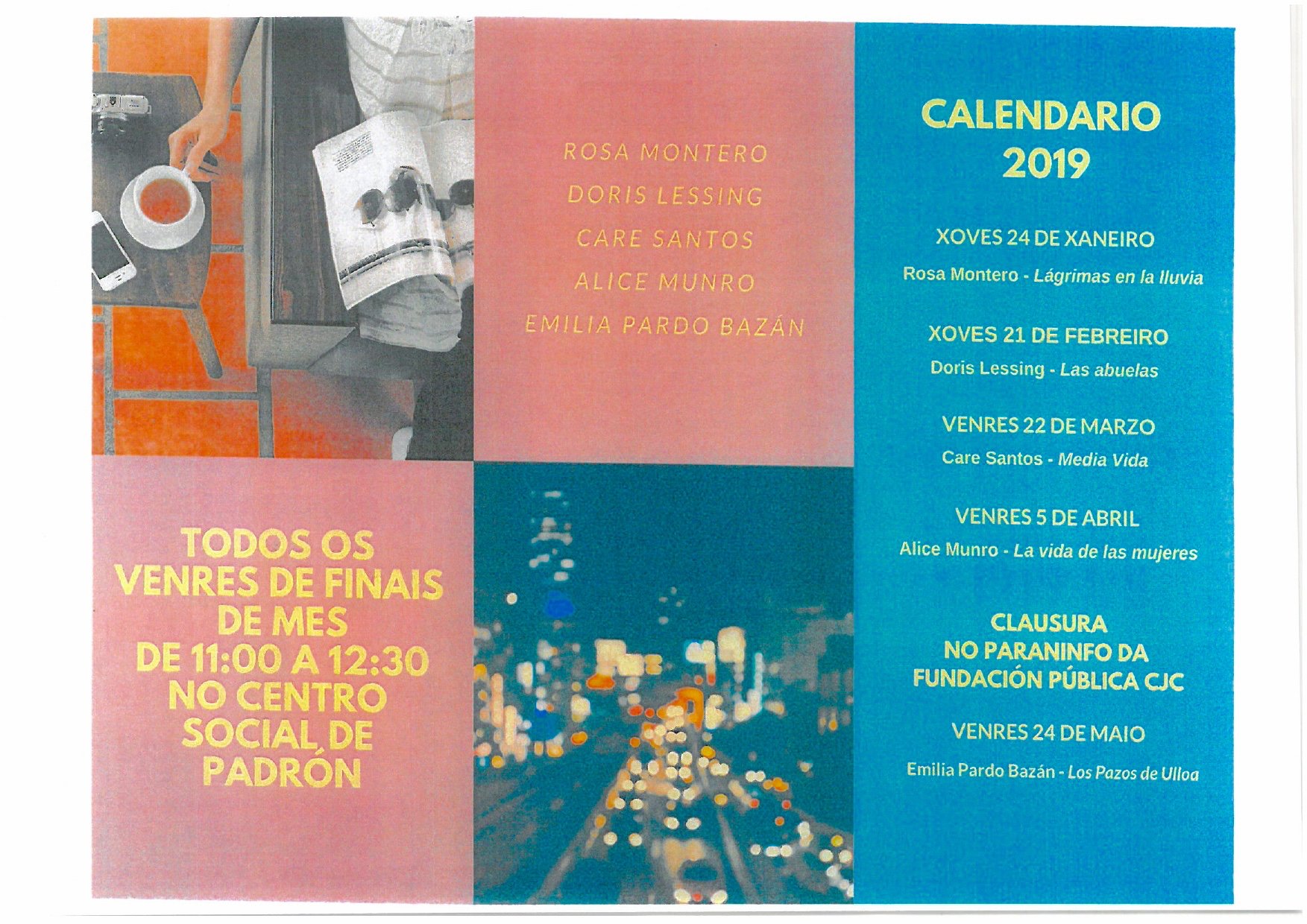 La fecha: el viernes 24 de mayo de 11.00 horas a 12.30 horas con la lectura y charla sobre la obra «Los Pazos de Ulloa» de Emilia Pardo Bazán.