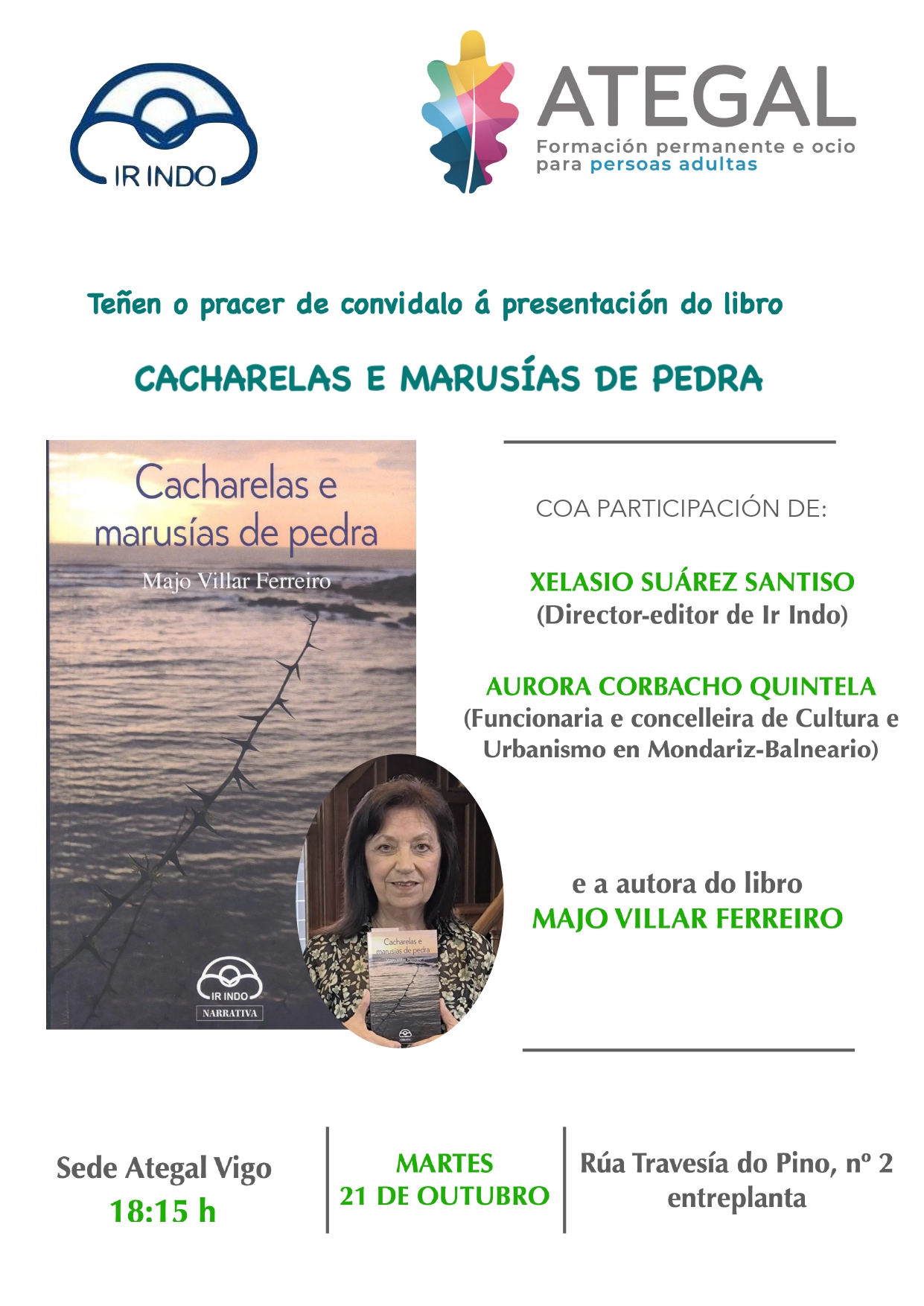 Las Aulas de Ategal Vigo acogen la presentación de un libro muy especial. Se trata de la nueva novela de Majo Villar, profesora de las mismas Aulas. El evento se celebrará en la sede de Ategal Vigo. Cuenta, además de con la propia autora, con la participación del director-editor de Ir Indo, Xelasio Suárez, y […] |